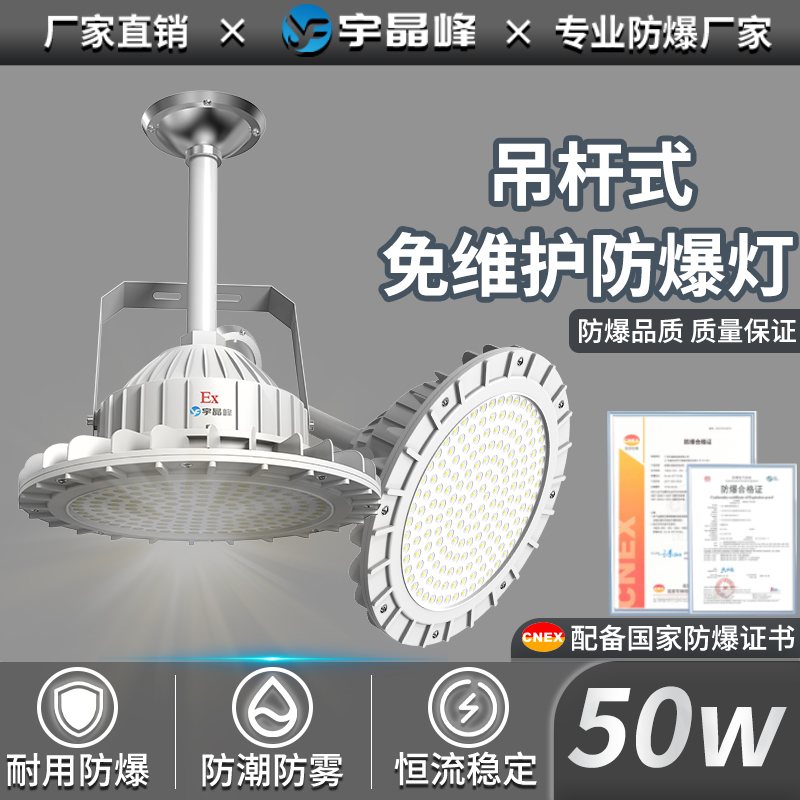 免维护防爆灯是灯具的其中一个非常重要的防爆原理就是限制与爆炸性气体、爆炸性粉尘接触的外壳表面、零部件表面或电子元器件表面的温度以及限制电气接触表面温度低于其最小点燃温度或引燃温度。